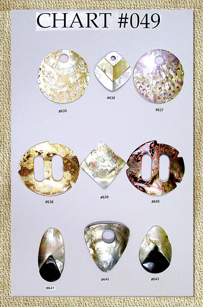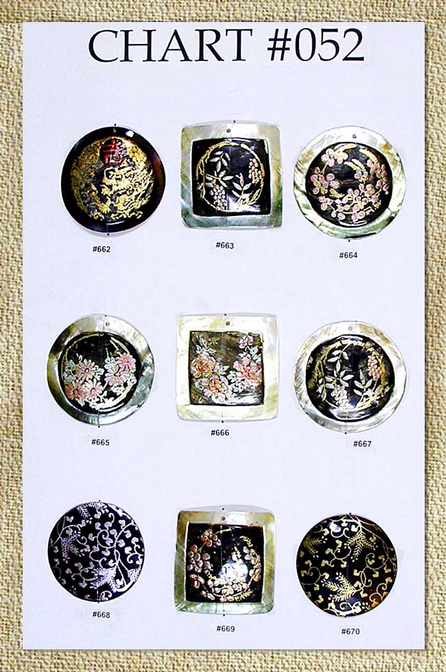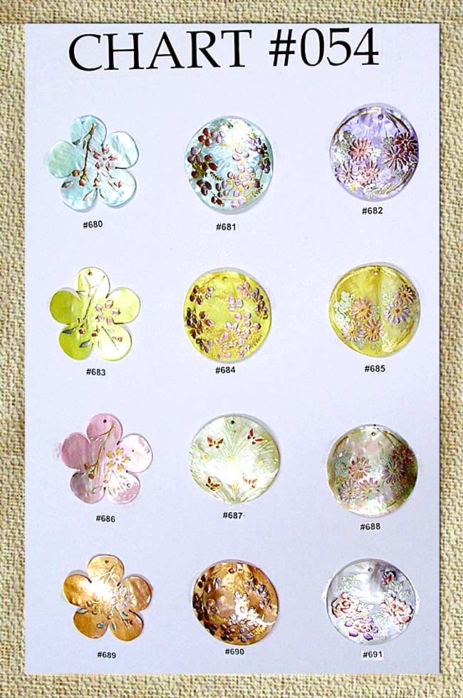 Assorted hand painted shell pendants.