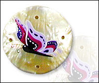 MOP shell, hand-painted in multi-color butterfly design.