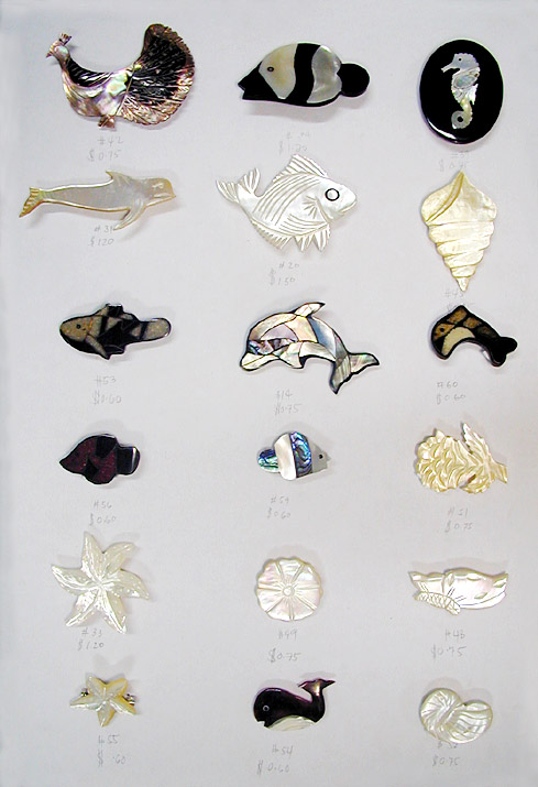| Carved Shell & Brooches Shell Inlay - All natural material are purely comes from handcrafted precious shells. Available in different variations. Your designs are also welcome. Numbers and placement of hole(s) is changeable upon request. Jumbo Pacific's Raw of Materials comes from a variety of handcrafted wood, coco, shell, bone and many more just to mention a few. It may come in variety of colors and designs as preferred by the need and requirement of the customers. |